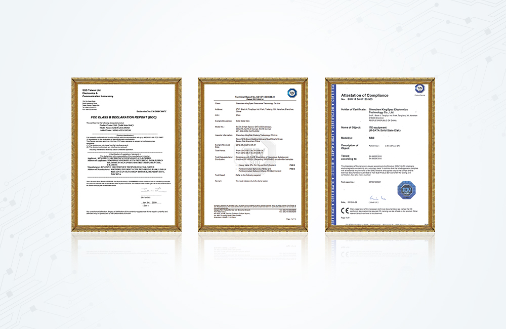 拓寬產(chǎn)品線PCIe、PATA、DOM、金勝維SATA系列產(chǎn)品通過(guò)CE、FCC、RoHS等權(quán)威認(rèn)證